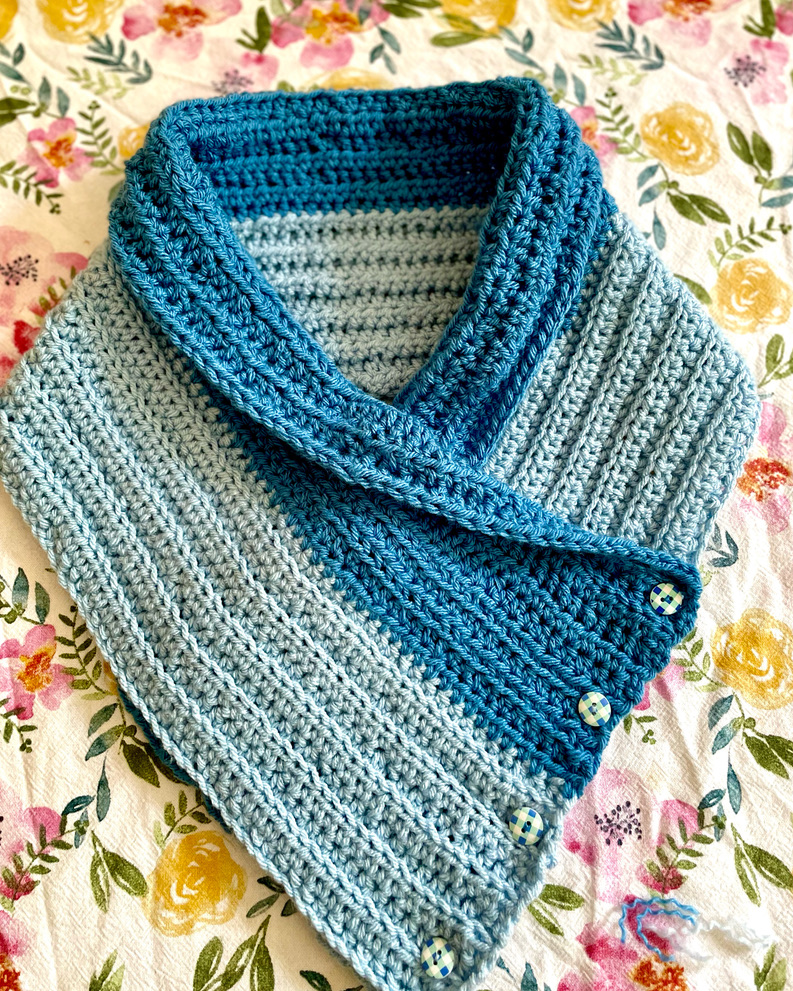 This is a four button scarf. Pair it with a dress or a top. It’s perfect for a cosy autumn evenings. This item is machine washable at 30 degrees. Dry Flat.